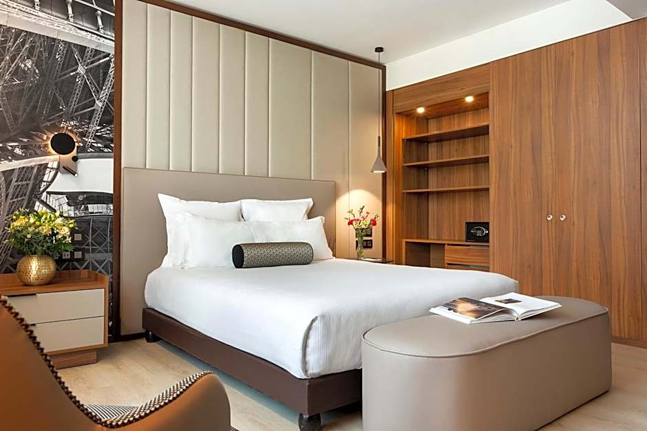 With a modern décor, this double room has a desk and a spacious, white marble bathroom. A Nespresso© coffee machine and a mini-bar are also available.